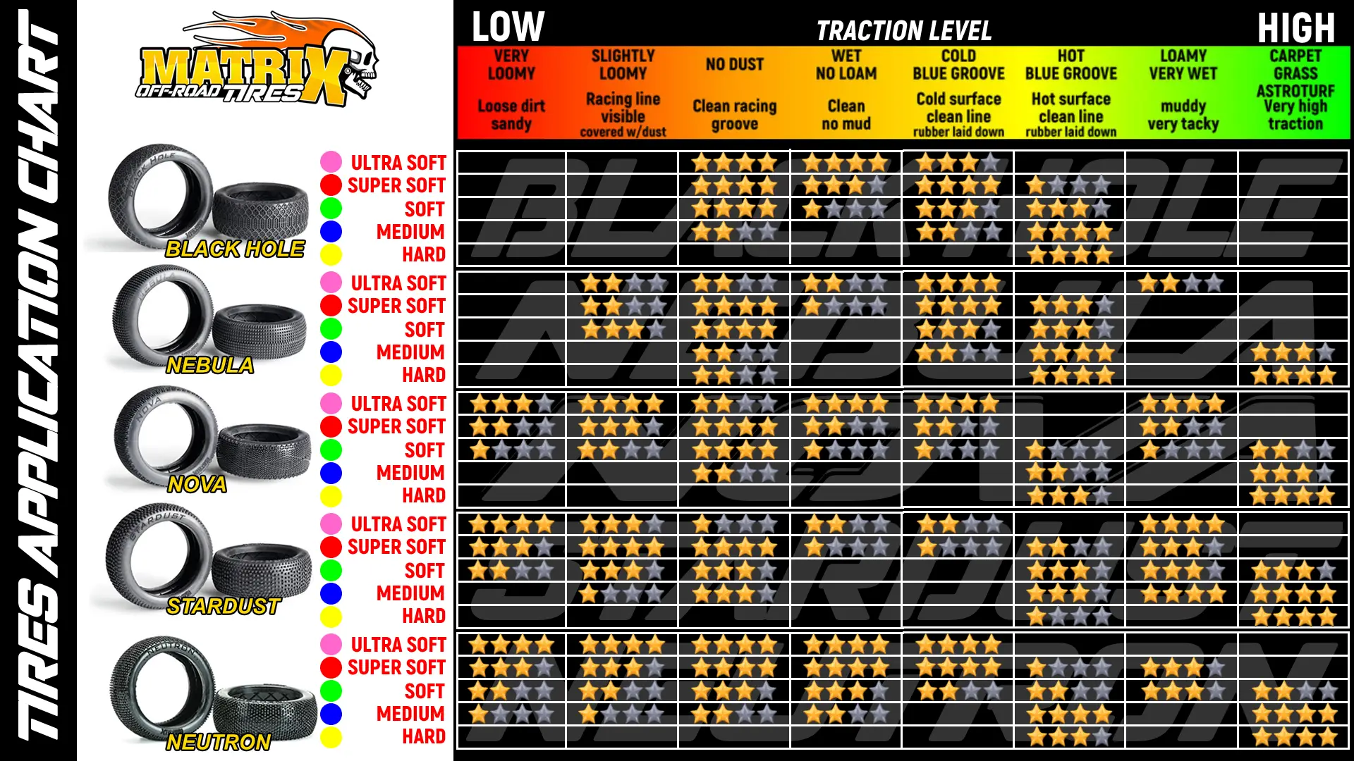 Matrix Nova tires are the best choice on slippery tracks or when the dirt really sticks to the tire in muddy conditions.